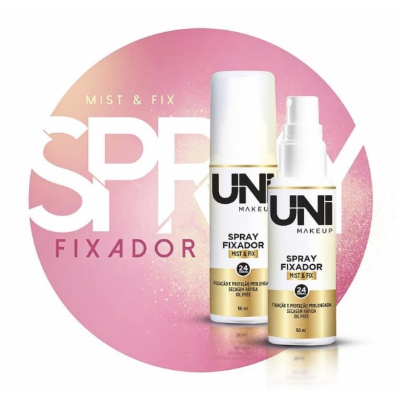 O fixador da Uni Makeup da linha Mist & Fix aumenta a duração da make. Possui fixação e proteção prolongada, secagem rápida, oil free e controla o brilho.