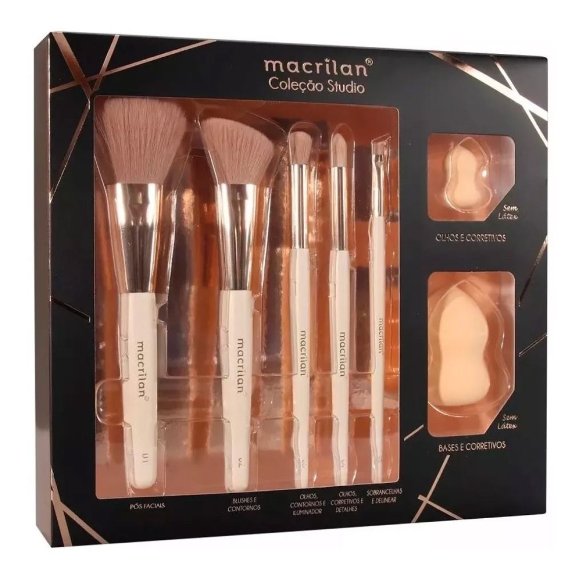 O Kit Pincéis + Esponja Macrilan Coleção Studio é ideal para proporcionar uma maquiagem perfeita.